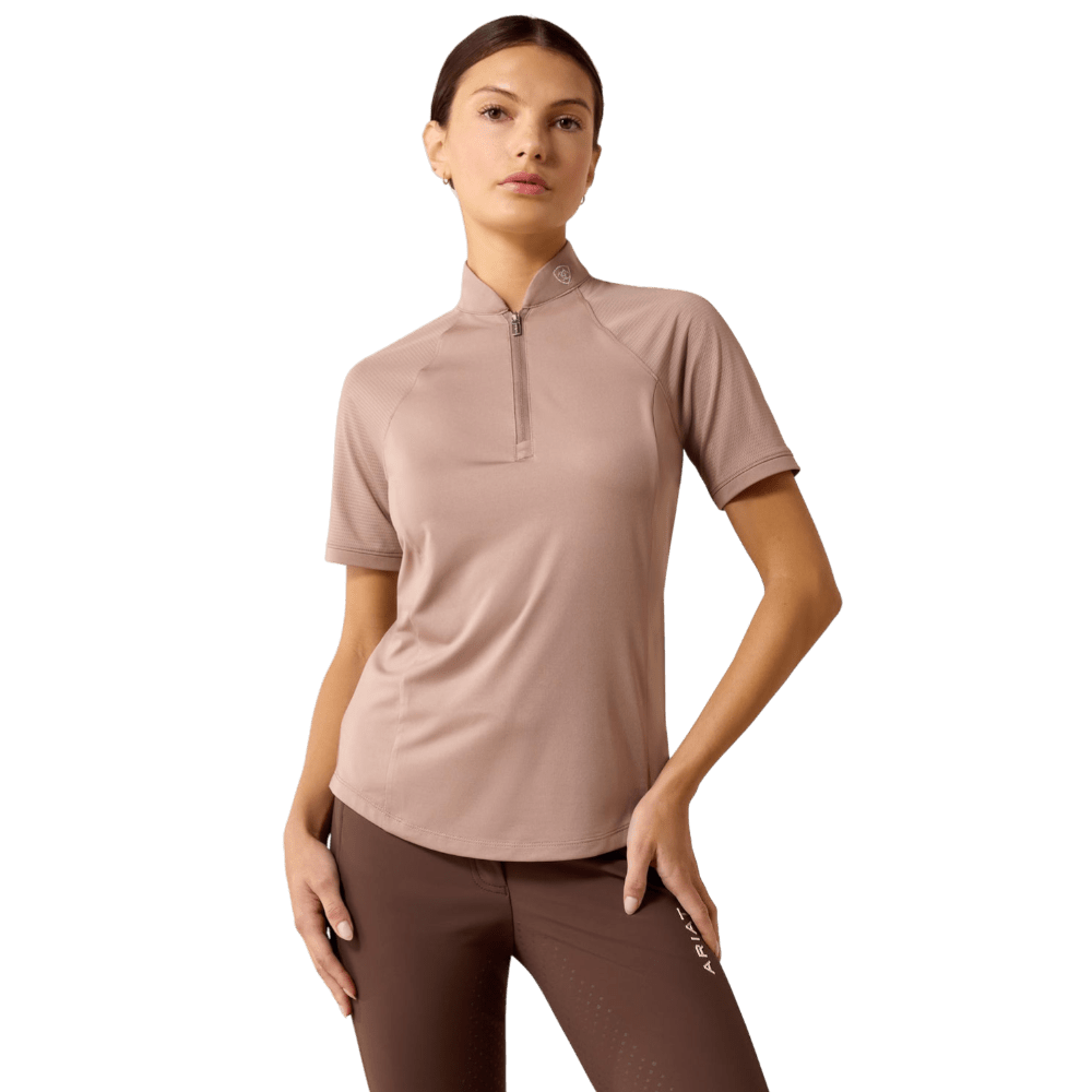 Als je de elegantie van een wedstrijdshirt wilt combineren met het comfort van je favoriete trainingstop, trek dan Ariat T-Shirt Soquel 1/4 Zip Baselayer Antleraan. Met een eigentijdse kraag en een naadloze mix van jersey en mesh is dit een must-have voor stal- en rijdagen bij warm weer.