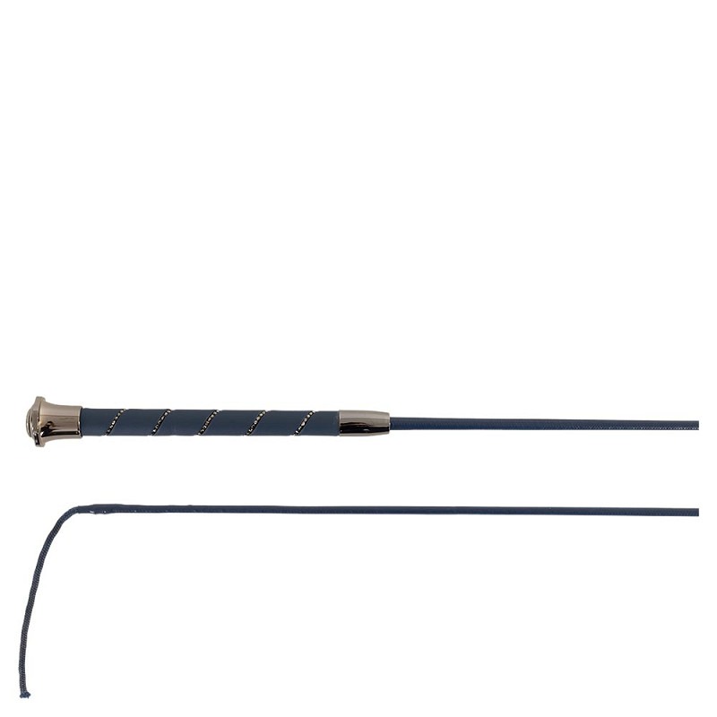 BR dressuurzweep Orion met een fiberglas kern en een zwarte stok. De speciale coating zorgt voor een lichte glans en langere levensduur. Ook het klapkoordje (10 cm) is door de verstevigende coating extra duurzaam. De zweep heeft een lederen handgreep met imitatiediamanten en een luxe zilverkleurige knop.