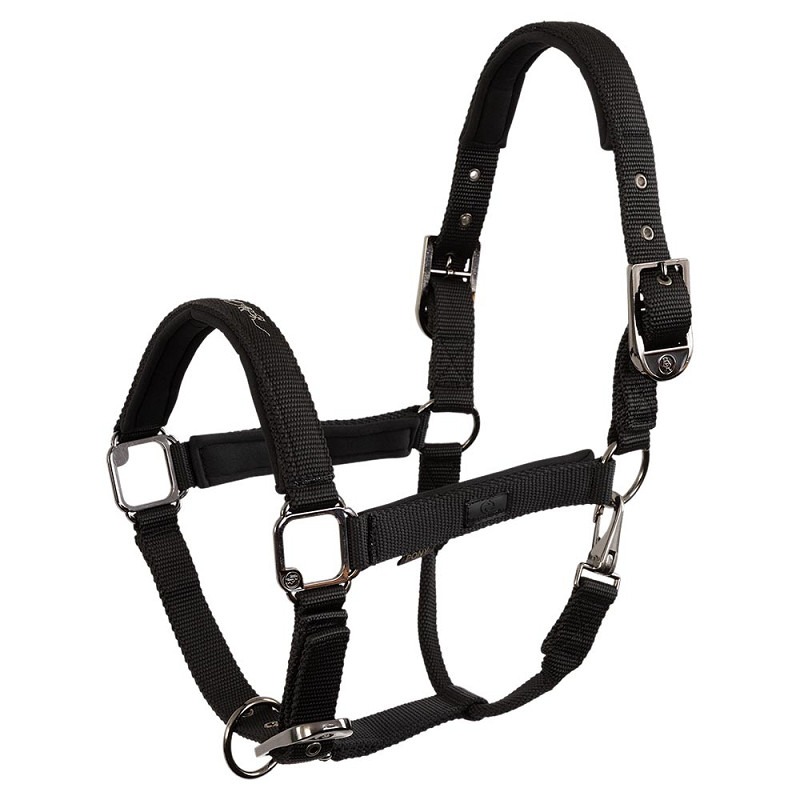 Het kopstuk is aan beide zijden verstelbaar, zodat het perfect op maat kan worden afgesteld voor jouw paard. De neusriem is voorzien van een subtiel siliconen paarden-artwork, wat zorgt voor een unieke en elegante uitstraling.