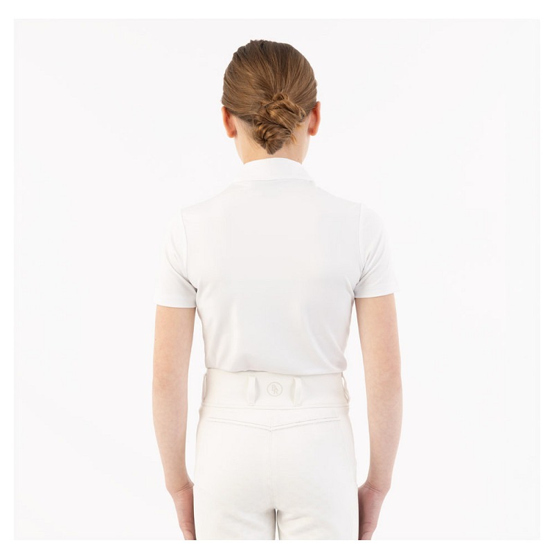 Het BR Eevolv wedstrijdshirt Kenzie Lucent White combineert elegantie, comfort en functionaliteit voor ruiters die stijlvol in de wedstrijdring willen verschijnen. Het shirt heeft een hoge, opstaande kraag en een comfortabele pasvorm, waardoor je er netjes uitziet en je tegelijkertijd vrij kunt bewegen tijdens het rijden.