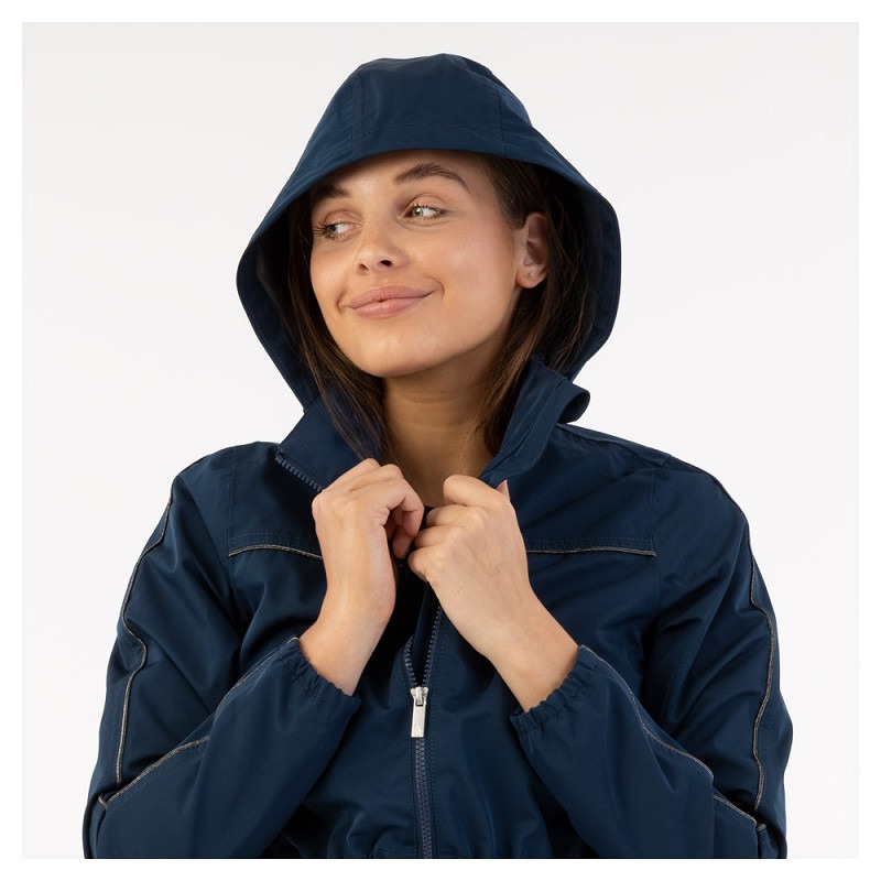 In de kraag zit een verborgen capuchon met koordstoppers, zodat je snel beschermd bent tegen een regenbui. De elastische biezen aan de mouwuiteinden zorgen voor extra comfort en een goede aansluiting.
