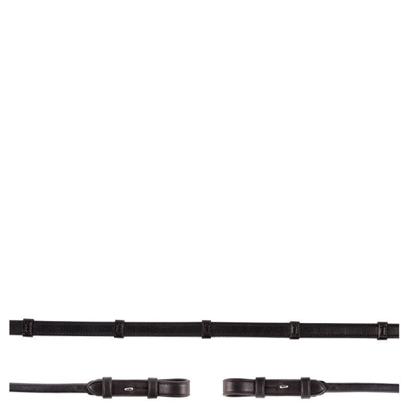 BR lederen antislip teugels rond genaaid met rubberen binnenzijde, lederen handstops en blinde sluitingen, 16 mm. Zonder teugelstops. De uiteinden van de teugel zijn van rondgenaaid leder.