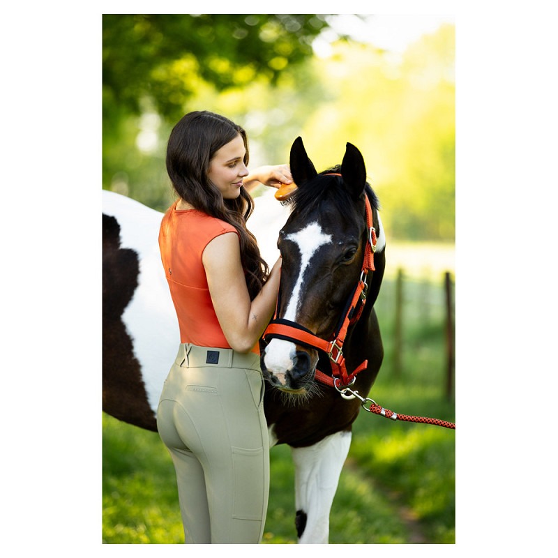 Het BR mouwloos shirt Klaske Mecca Orange is een sportief en lichtgewicht shirt dat perfect is voor trainingen en warme dagen op stal of in het zadel. Het ademende materiaal helpt je fris en comfortabel te blijven tijdens het rijden.