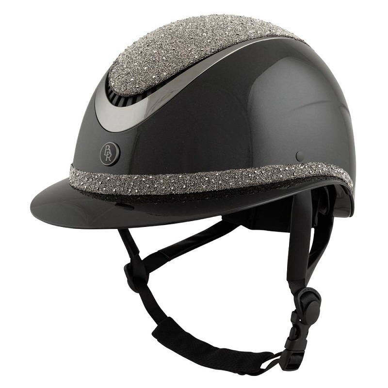 Deze stralende BR rijhelm Theta Plus Dazzling Glamourous Glossy met opvallende 3D glittertop, extra 3D glitterrand en een groot vizier is een echte eye-catcher. De helm biedt veel draagcomfort en een goede pasvorm, die met behulp van de draaischijf verfijnd kan worden. De helm voldoet aan de CE EN 1384-2023 veiligheidsnormering.