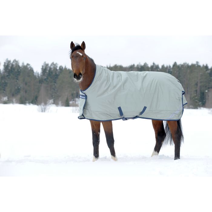 Door de speciale combinatie van een zon- en hitte reflecterende coating en een zilver uiterlijk is deze deken in staat om het paard in alle weersomstandigheden te beschermen. Deze stoffen zorgen ervoor dat lichaamswarmte bij kou beter wordt vastgehouden en zonnewarmte gereflecteerd wordt.