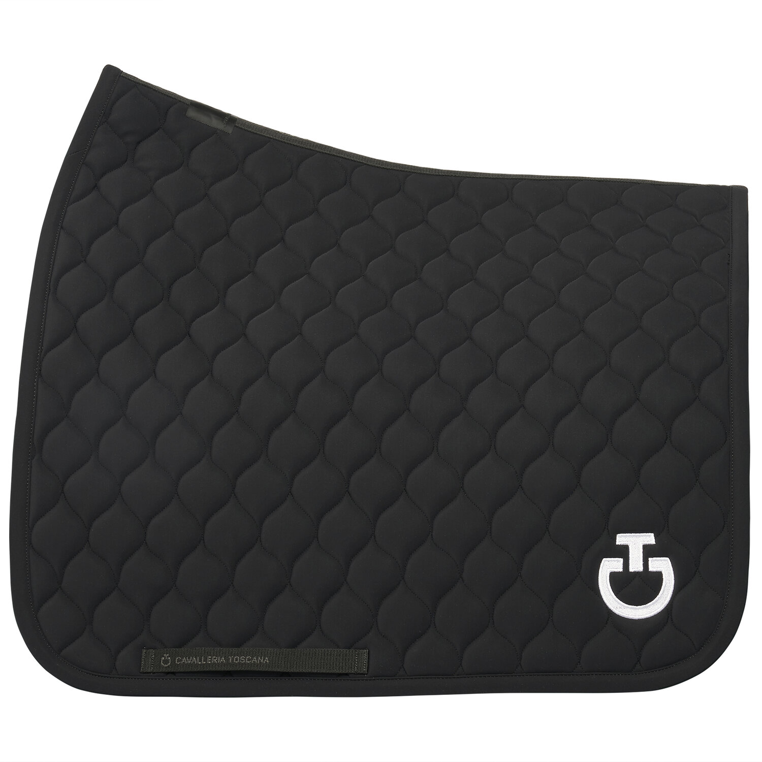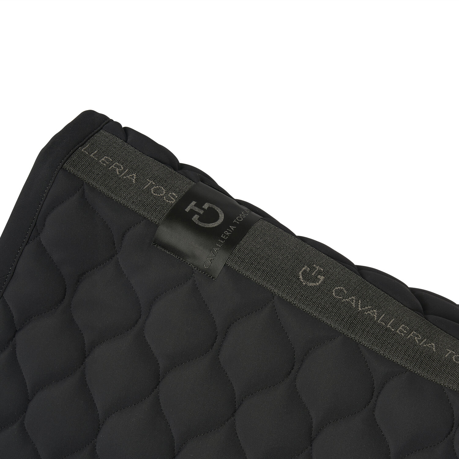 Het Cavalleria Toscana Dekje Circular Quilted Jersey Black combineert comfort met een strakke, moderne uitstraling. De zachte jersey stof met het kenmerkende ronde quiltpatroon zorgt voor een fijne pasvorm en ligt prettig op de rug van het paard. Perfect als wedstrijddekje in de dressuurring