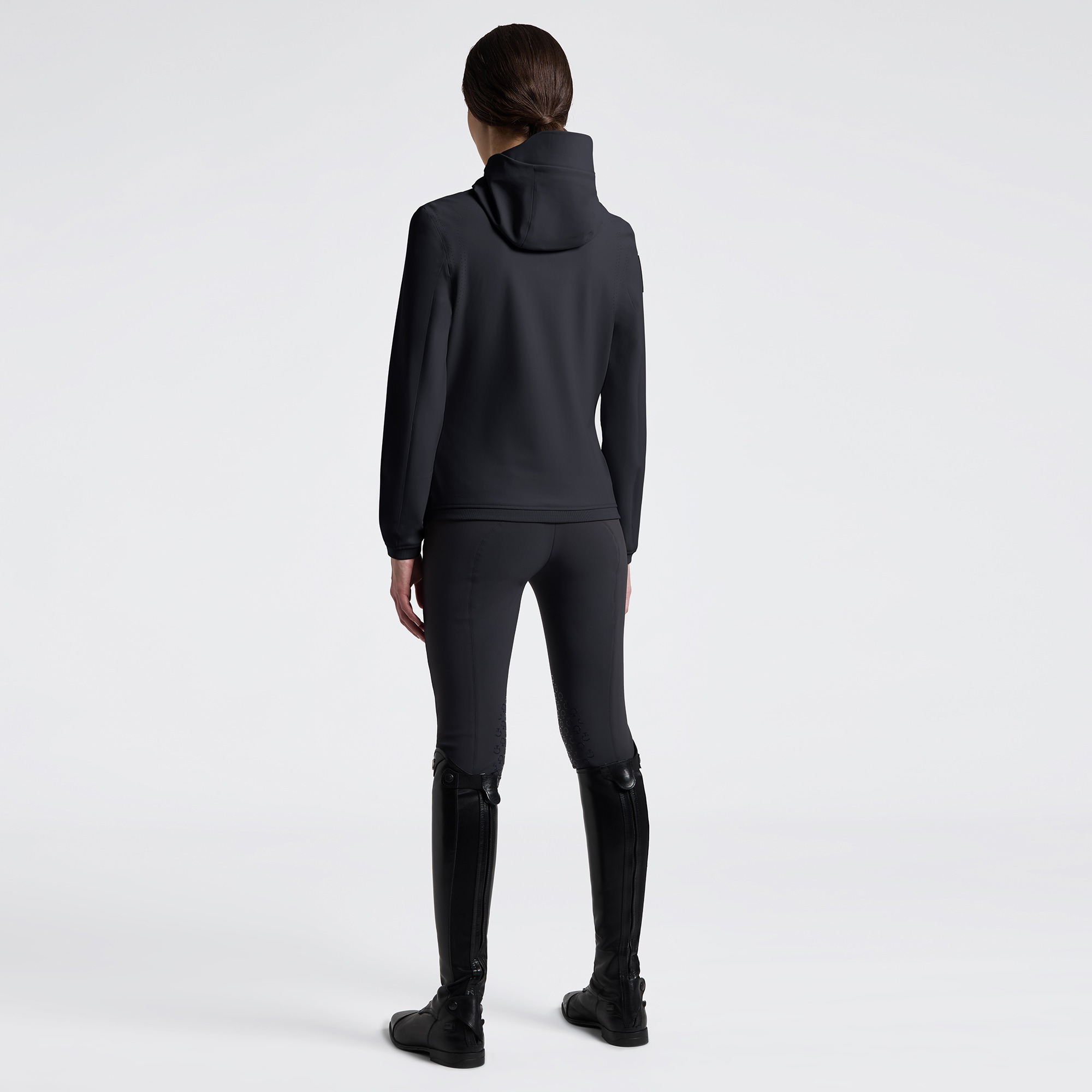 Cavalleria Toscana Softshell jas Perforated Jersey Charcoal 7Q00 Dames; Perfect om te rijden in wisselende omstandigheden combineert deze softshell jas van Cavalleria Toscana bescherming tegen de elementen met uitstekend ademend vermogen. De jas is volledig gemaakt van technisch materiaal en heeft thermisch gesealde naden voor superieure bescherming tegen wind en vocht.