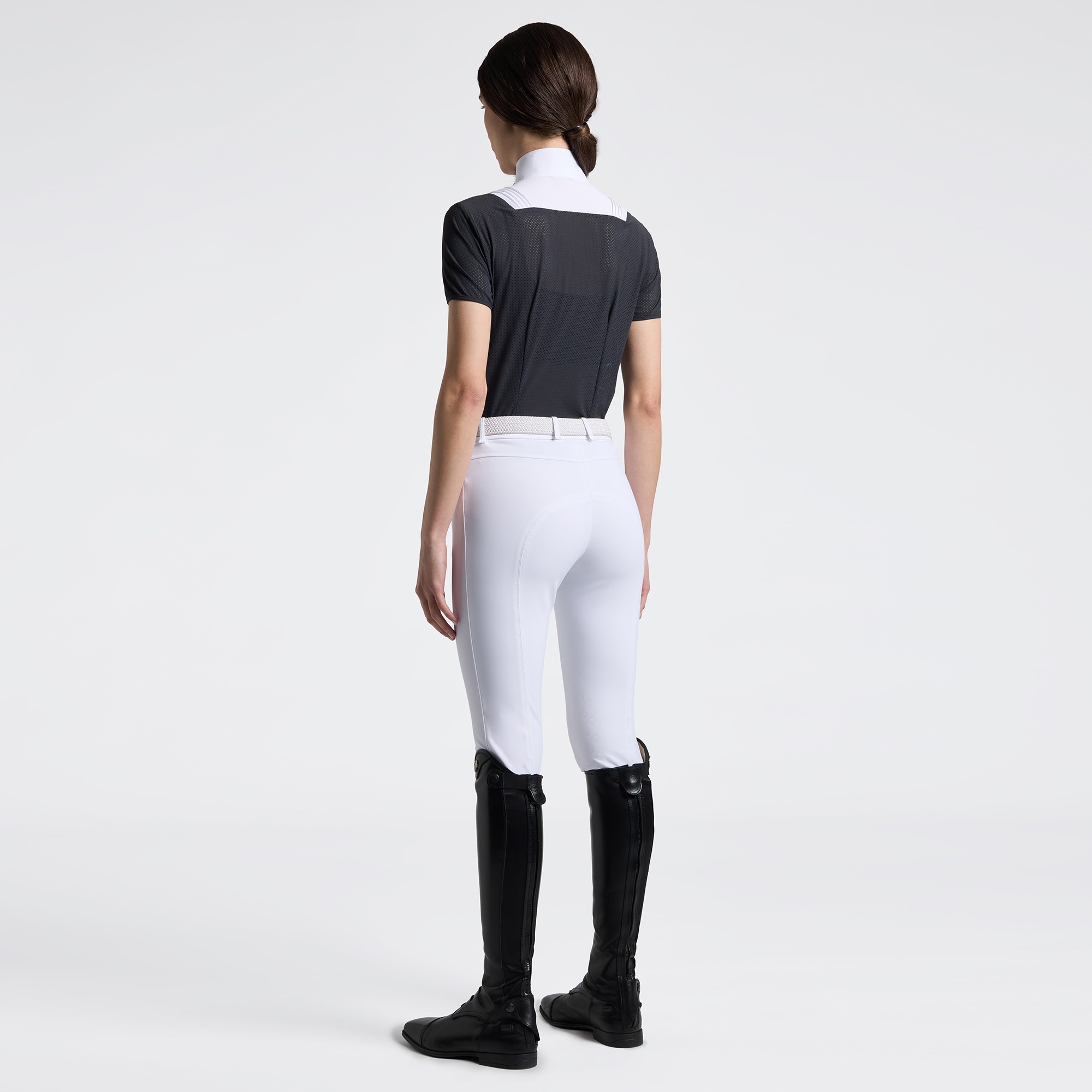 Het Cavalleria Toscana Wedstrijdshirt American SS Charcoal 7Q00 Dames is een lichtgewicht en sportief shirt, ontworpen voor comfort en een nette uitstraling tijdens wedstrijden of trainingen.