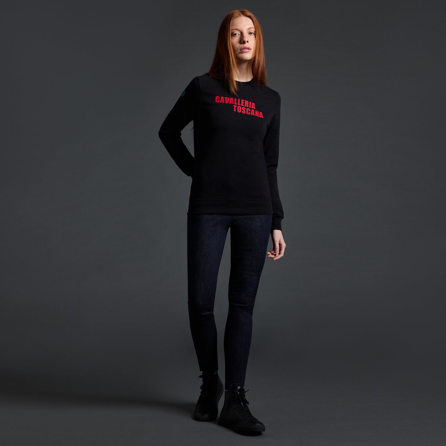 Het Cavalleria Toscana x Rome Gladiators Sweatshirtis een zachte sweatshirt van katoen met ronde hals, officiële Cavalleria Toscana × Rome Gladiators merchandise voor het Global Champions League-seizoen 2025. Voorzien van een hittegedrukt Cavalleria Toscana-logo op de borst en een Rome Gladiators-embleem op de mouw voor een sportieve, opvallende look.