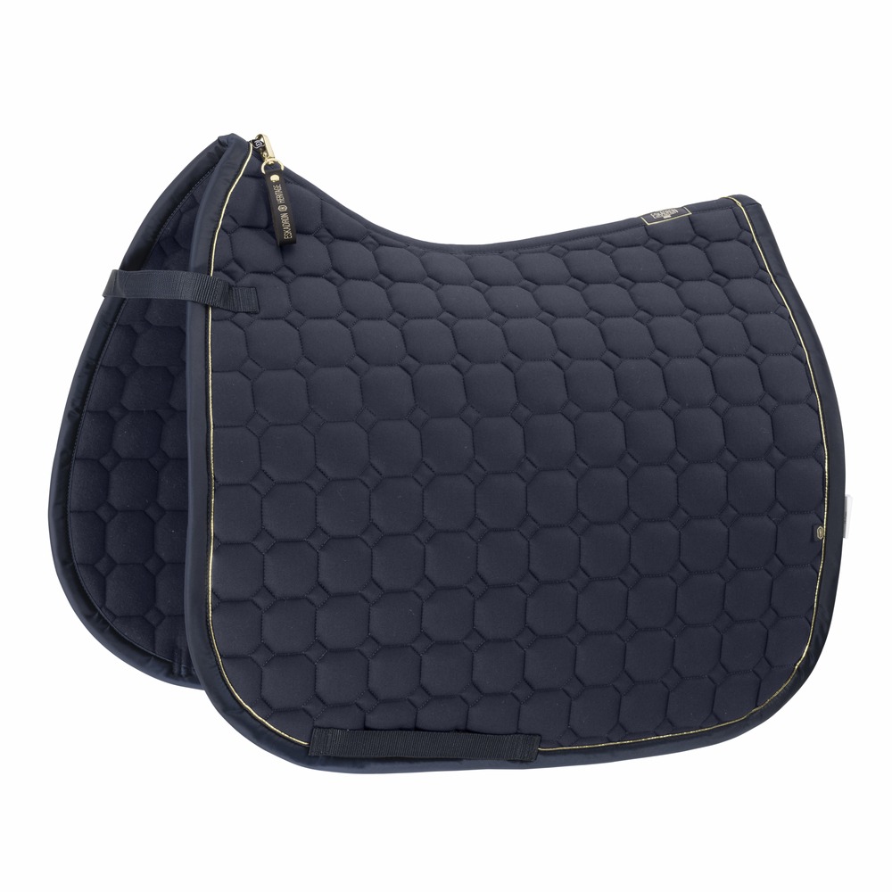 Het dekje heeft een compacte vulling en quilting, waardoor het licht en comfortabel blijft. De luxe afwerking met Lurex-bies op glossy-afwerking en het Heritage Flag-label aan beide zijden geven het een elegante uitstraling. Voor optimale pasvorm is het dekje uitgerust met een gurtslus met drievoudige fixeringsoptie.