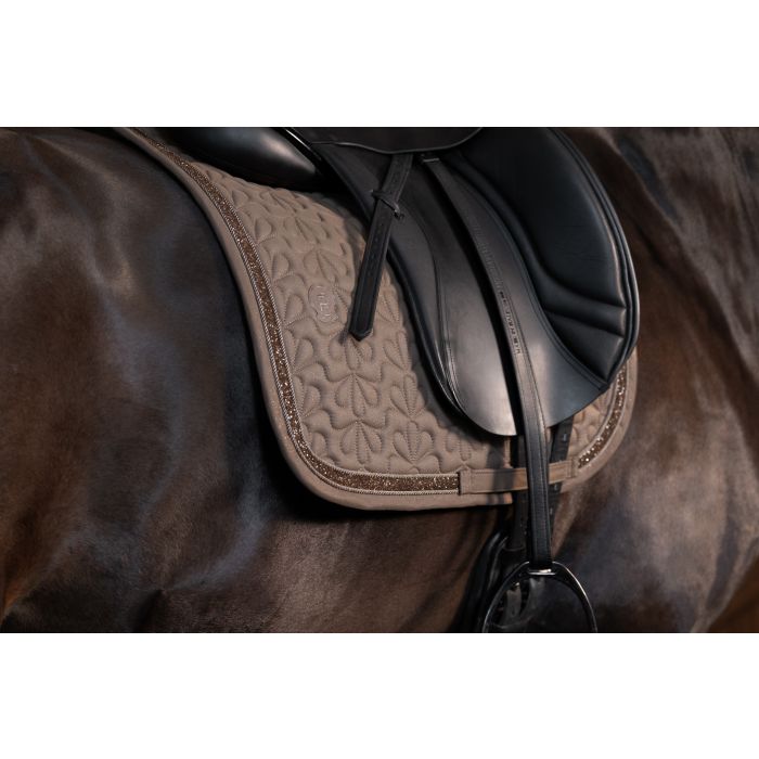 Laat je paard schitteren met het Eskadron Platinum Sparkle Jewel Dekje SS25 – een luxe zadeldek uit de nieuwste Platinum collectie dat glamour en functionaliteit perfect combineert. De subtiel glinsterende stof met elegante sierkoord en fonkelende kristalaccenten geeft dit dekje een verfijnde uitstraling, ideaal voor de ruiter die net dat beetje extra wil.