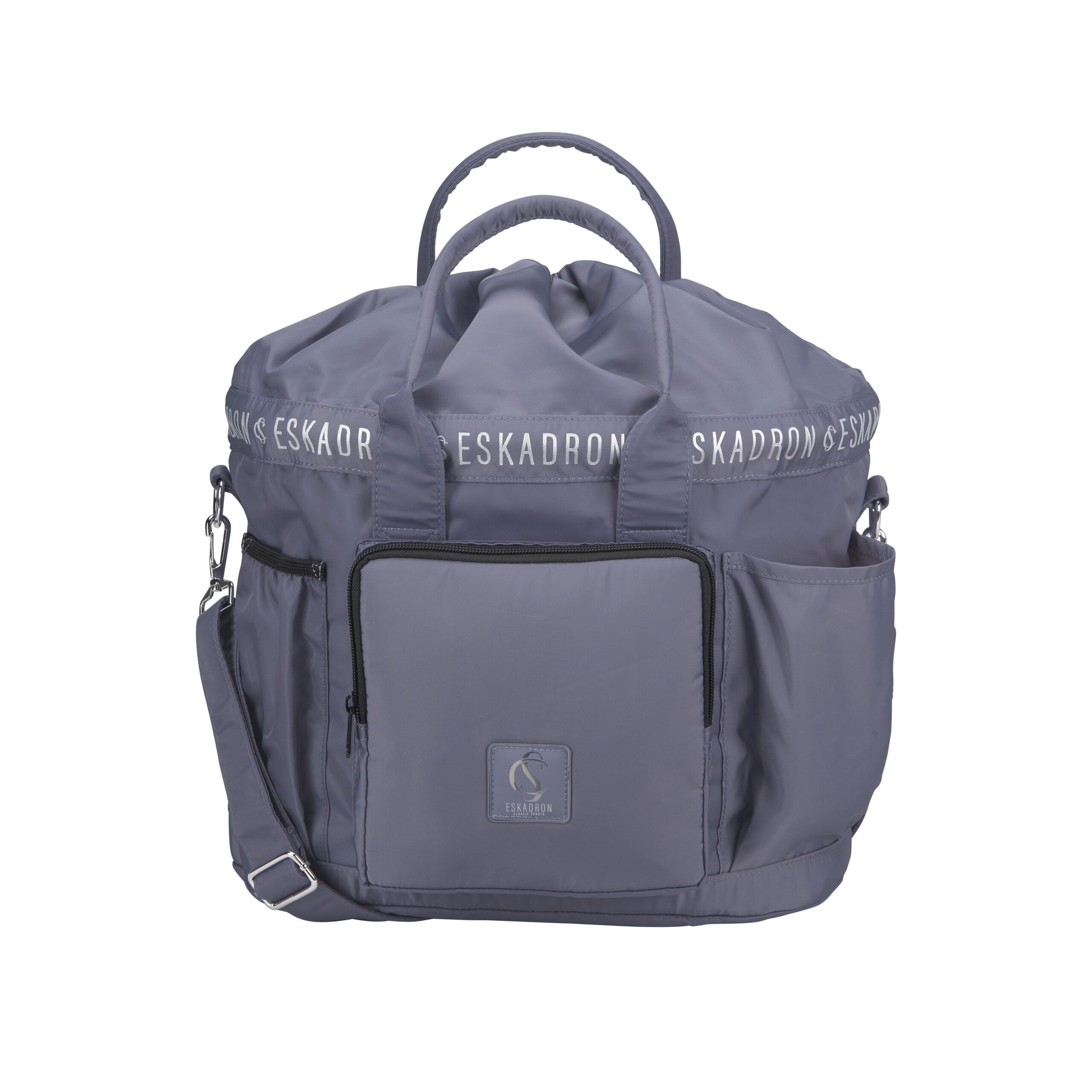 De tas is voorzien van stevige draaggrepen en een verstelbare schouderband, waardoor je hem comfortabel kunt dragen. De zilverkleurige metalen details en het Eskadron embleem geven de tas een elegante en herkenbare afwerking.