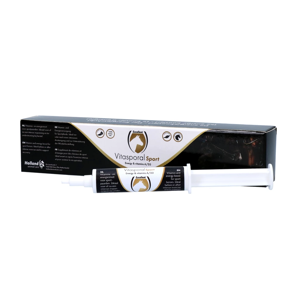 Vitasporal Sport is het geheime wapen voor topprestaties. Het zorgt ervoor dat je paard meer energie heeft tijdens wedstrijden en sneller herstelt na de tijd. Daarnaast werkt het als een opkikker voor paarden, doordat het vitamines en voeding bevat. Vitasporal Sport is aanvullend diervoeder voor paarden.