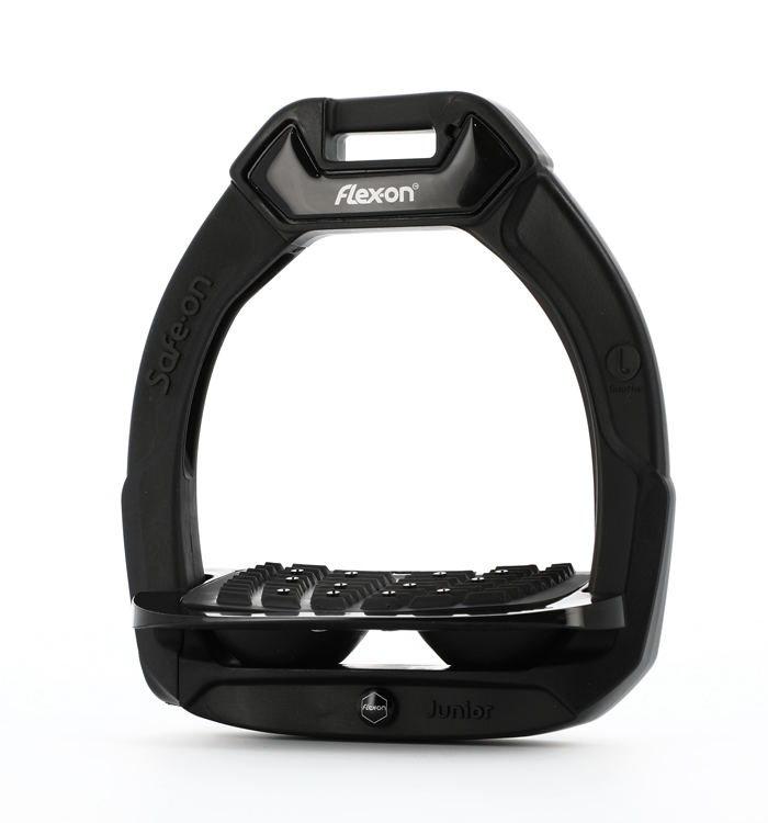 • Veiligheidsmechanisme: De buitenste arm van de beugel is flexibel en breekt los bij een val, waardoor de voet van de jonge ruiter veilig uit de beugel komt en beknelling wordt voorkomen.
