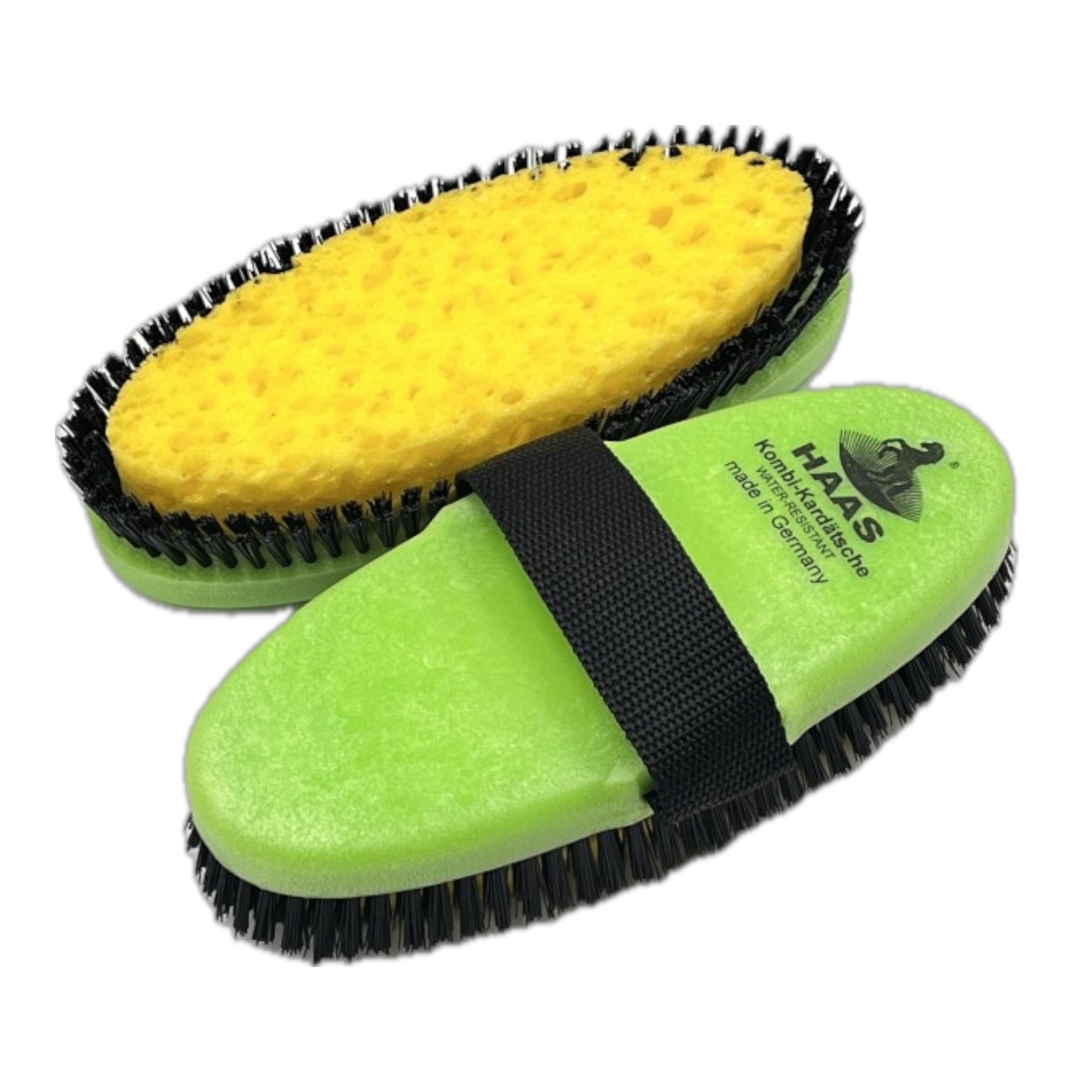 De Haas Kombikardatsche wasborstel is een veelzijdige combinatieborstel die speciaal is ontworpen voor het wassen van paarden. Deze borstel combineert een spons in het midden met stevige synthetische borstelharen aan de randen, waardoor je zowel kunt inzepen als grondig reinigen met één enkel hulpmiddel.