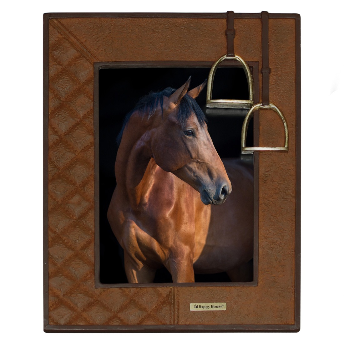 Geef je mooiste paardenmomenten een stoer en stijlvol plekje met deze Happy House Fotolijst met stijgbeugels in roestbruin. De gedetailleerde stijgbeugels geven de lijst een authentieke paardensport uitstraling en maken hem perfect voor iedere paardenliefhebber. Mooi op een dressoir, kast of bureau.