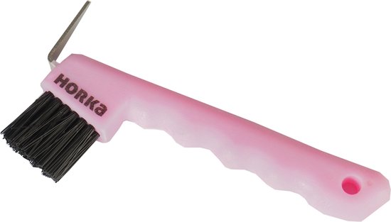 Handige hoevenkrabber met stevige metalen haak en ingebouwde borstel. Ideaal voor het snel en effectief schoonmaken van hoeven.