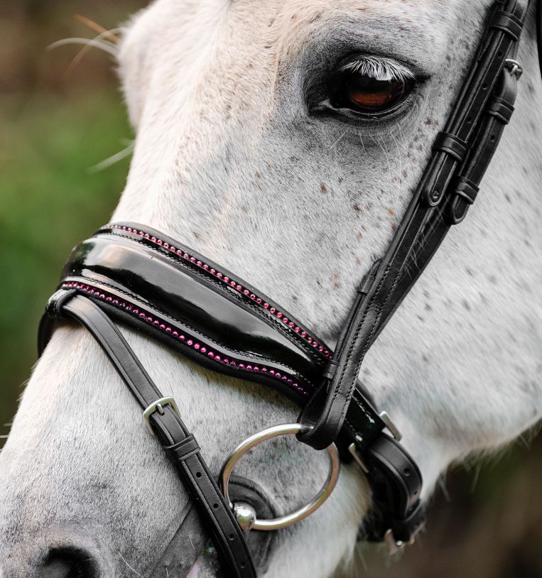 • Hoogglans patentleren neusriem met roze strassdetails