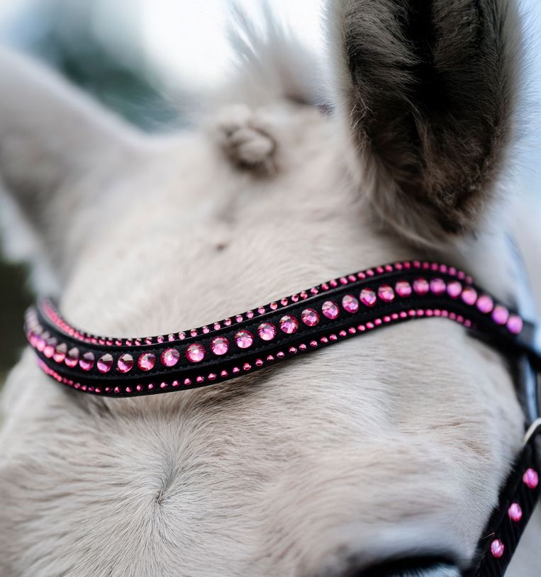 Het Horseware Pony Hoofdstel Diamante mag dan speciaal ontworpen zijn voor pony’s, maar aan uitstraling geen gebrek. Dit elegante dressuur hoofdstel heeft een hoogglans lakleren neusriem met verfijnde, roze diamantjes, aangevuld met een schitterend bling frontriem. Perfect voor ruiters die net dat beetje extra willen laten zien in de ring.