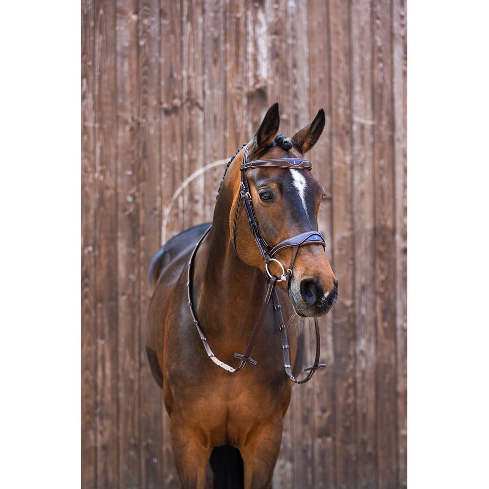 Luxe lakafwerking – De neusriem en frontriem zijn stijlvol afgewerkt met een glanzende laklaag voor een chique uitstraling.