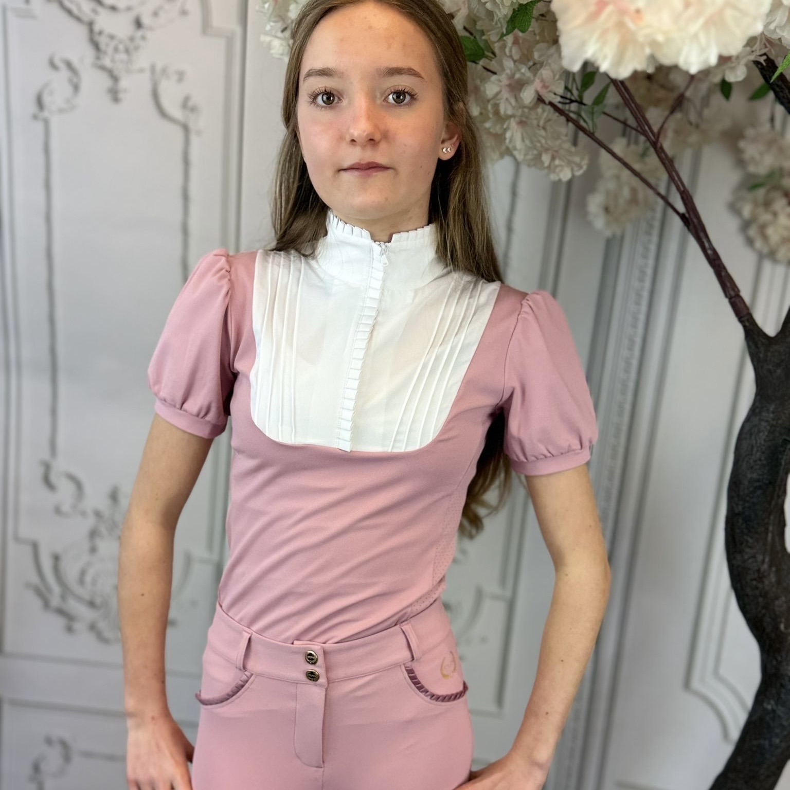 Het Joline Wedstrijdshirt Josephine Cherry Blossom Pink uit de Spring/Summer 2026 collectie combineert een elegante uitstraling met optimaal draagcomfort. De zachte roze kleur geeft het shirt een frisse en verzorgde look, perfect voor wedstrijden in het voorjaar en de zomer.