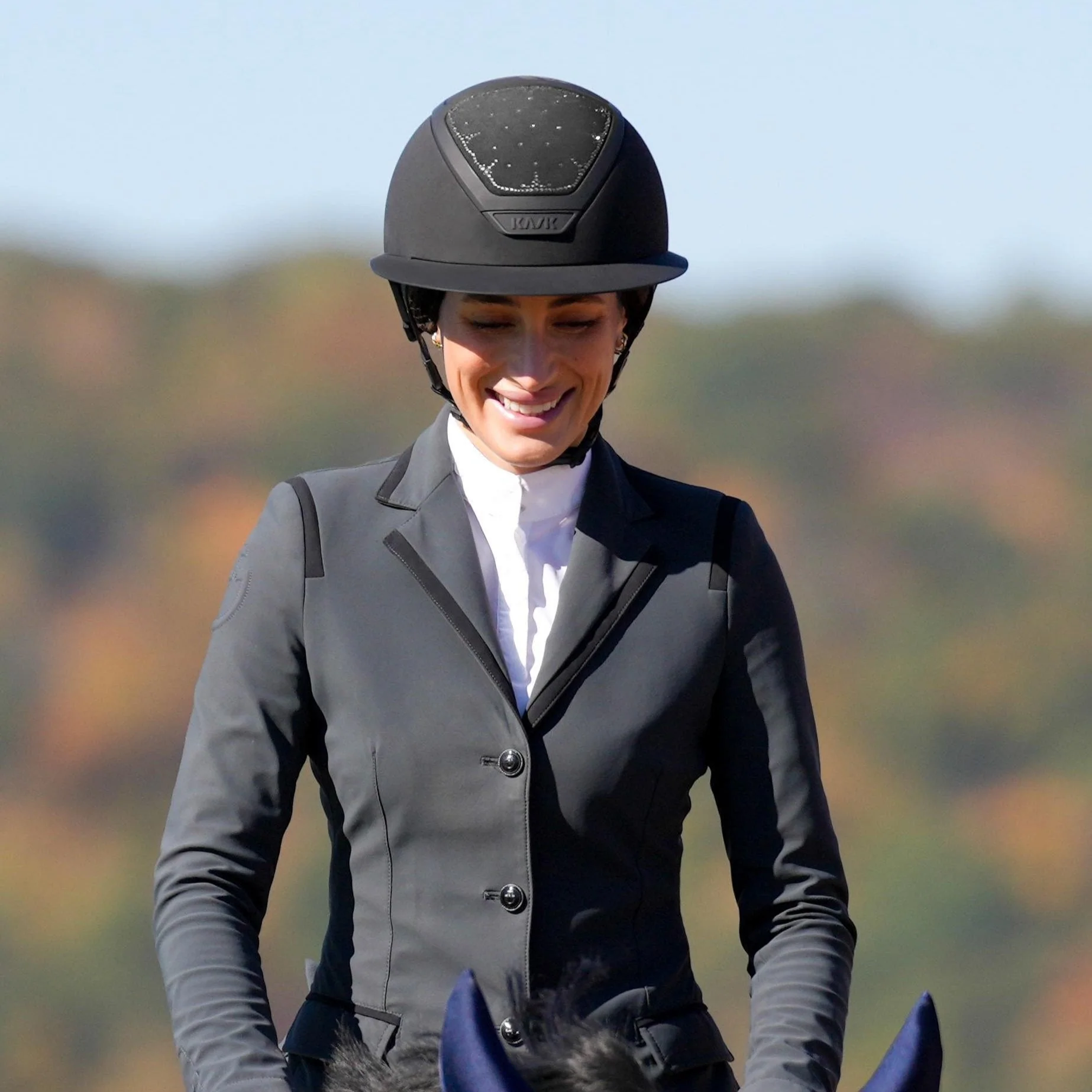 Deze helm is voorzien van verfijnde details, waaronder een subtiele glitterrand en een chique matte of glanzende afwerking (afhankelijk van uitvoering). De combinatie van stijl, sportiviteit en klasse maakt deze editie een echte eyecatcher in de piste én op stal.