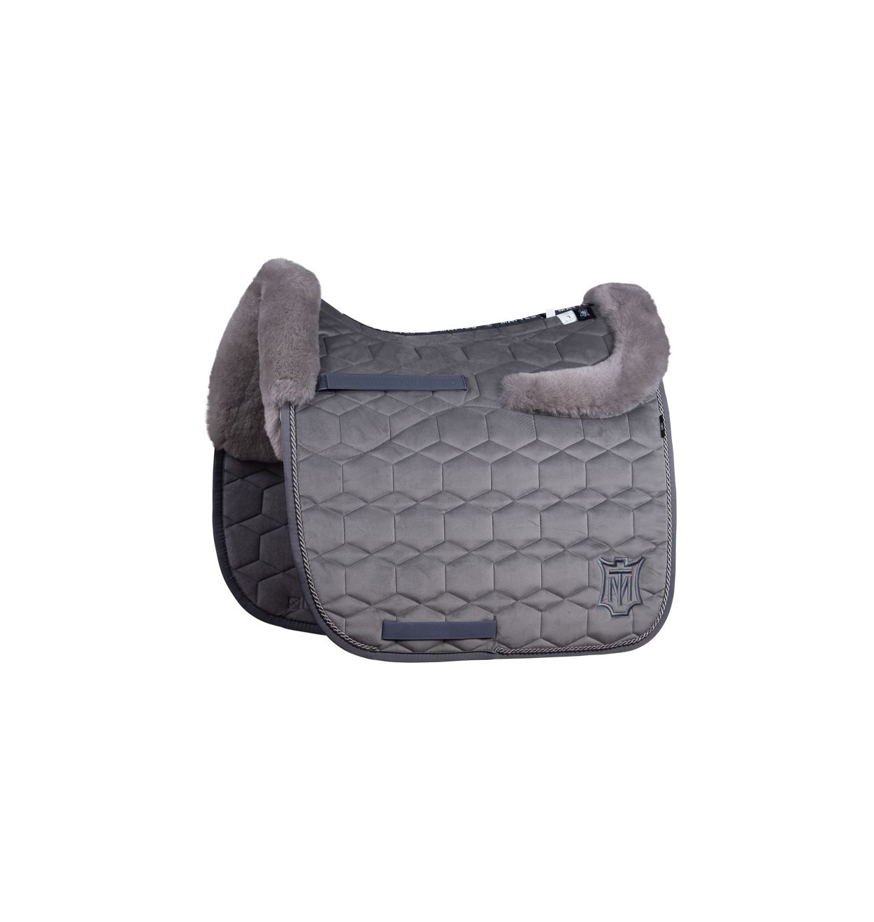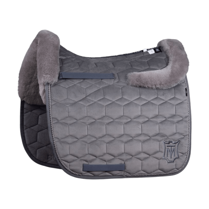 Dit luxe dekje is uitgevoerd in een prachtige velvetstof in de kleur schiefer ofwel een grijstint, gecombineerd met stijlvol grijs lamsbont. De combinatie zorgt voor een rijke, chique uitstraling die je paard én je outfit direct naar een hoger niveau tilt.