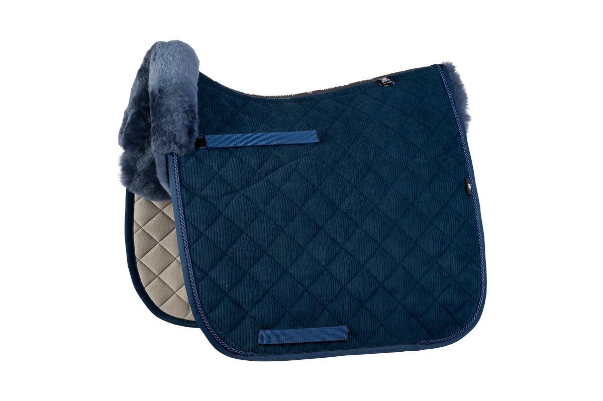 Het gebruikte echte lamswol in de kleur Plum is niet alleen een lust voor het oog, maar biedt ook superieur comfort. Het voorkomt drukpunten, zorgt voor optimale ventilatie en beschermt de gevoelige paardenrug tegen schuurplekken. De anatomische snit zorgt ervoor dat het dekje perfect op zijn plaats blijft, zonder druk op de schoft.
