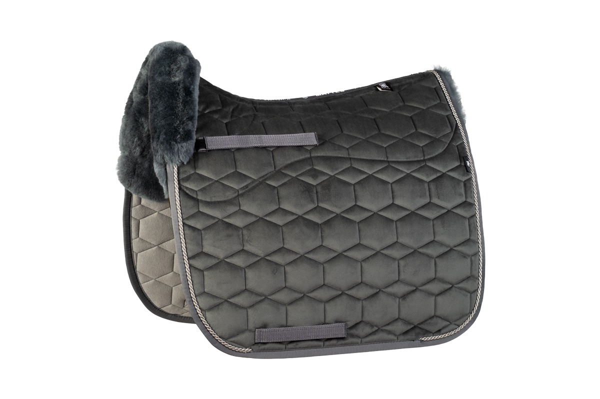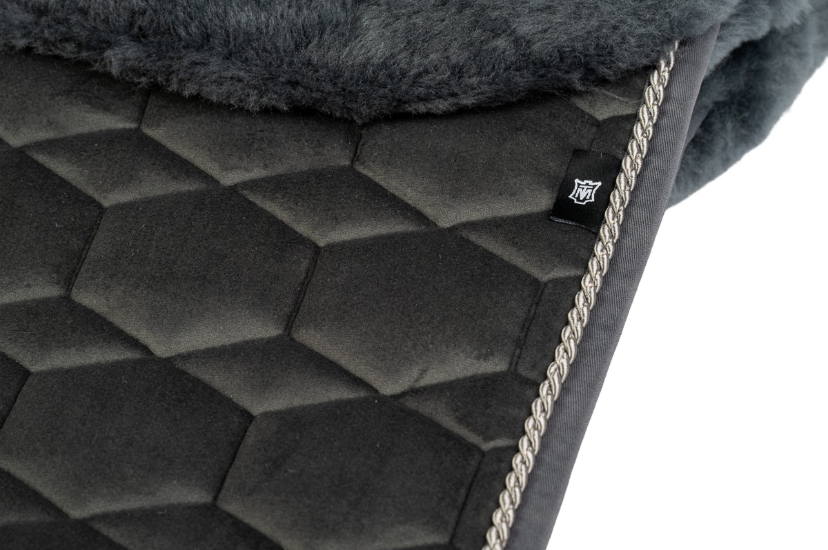 Het gebruikte echte lamswol is niet alleen een lust voor het oog, maar biedt ook superieur comfort en gaat lang mee. Het voorkomt drukpunten, zorgt voor optimale ventilatie en beschermt de gevoelige paardenrug tegen schuurplekken. De anatomische snit zorgt ervoor dat het dekje perfect op zijn plaats blijft, zonder druk op de schoft.