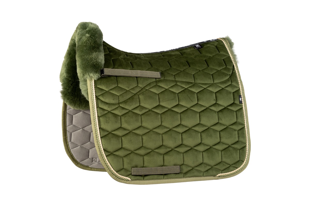 Geef je paard een stijlvolle en comfortabele rit met het luxueuze dekje van Mattes Dekje Half Lined Velvet Olive . Dit dekje combineert hoogwaardige materialen met een elegante uitstraling en uitzonderlijk comfort voor zowel paard als ruiter.