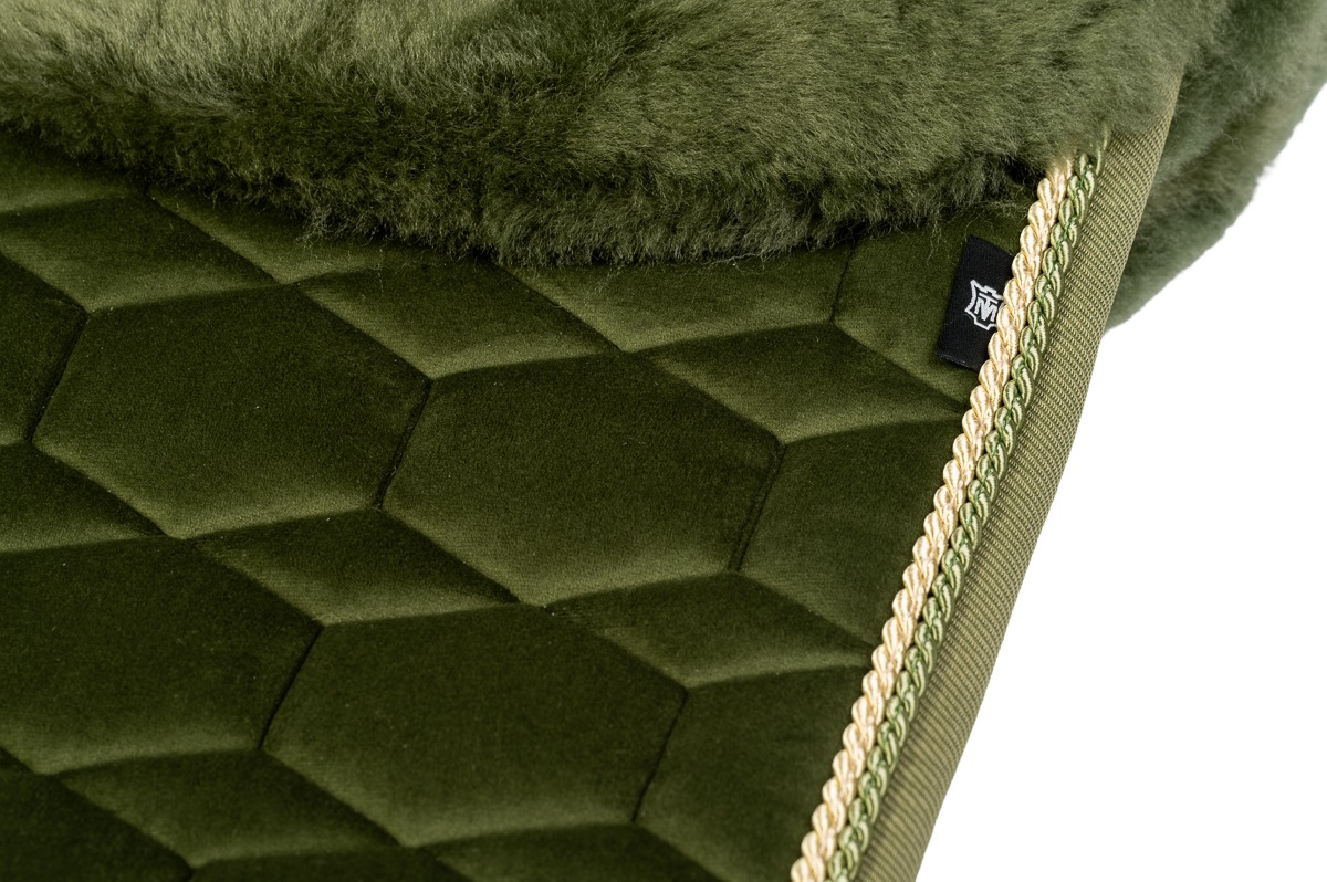 Het gebruikte echte lamswol is niet alleen een lust voor het oog, maar biedt ook superieur comfort en gaat lang mee. Het voorkomt drukpunten, zorgt voor optimale ventilatie en beschermt de gevoelige paardenrug tegen schuurplekken. De anatomische snit zorgt ervoor dat het dekje perfect op zijn plaats blijft, zonder druk op de schoft.