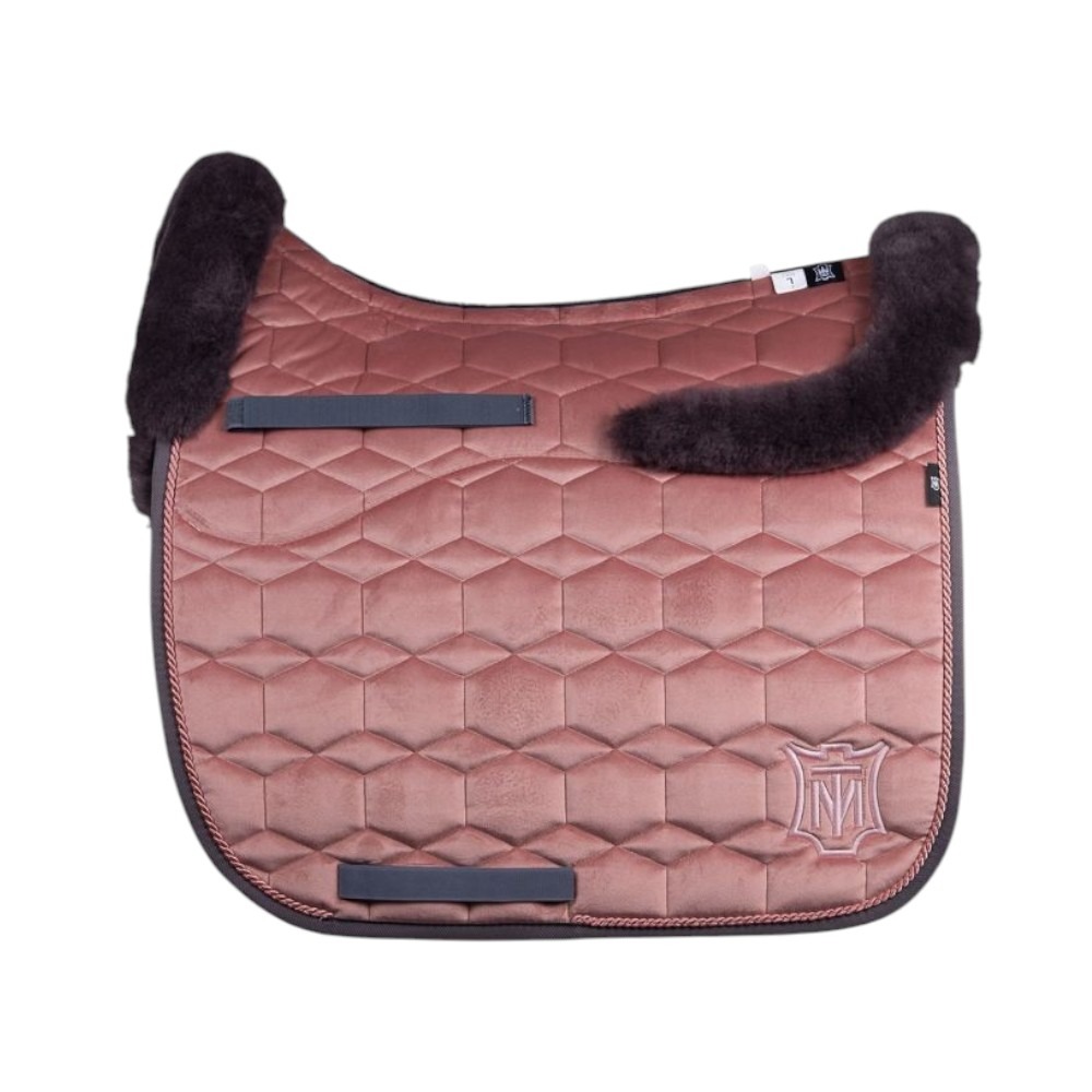 Het Mattes Dekje Velvet Misty Rose Plum met Bont straalt stijl en verfijning uit. De zachte velvet stof in Misty Rose vormt een prachtige combinatie met het rijke, diepe Plum-kleurige lamswol. De extra bont sierranden aan de voor- en achterzijde, samen met het lamswol onder het zitgedeelte, maken dit zadeldek tot een opvallende, comfortabele keuze voor elke paardrijliefhebber.