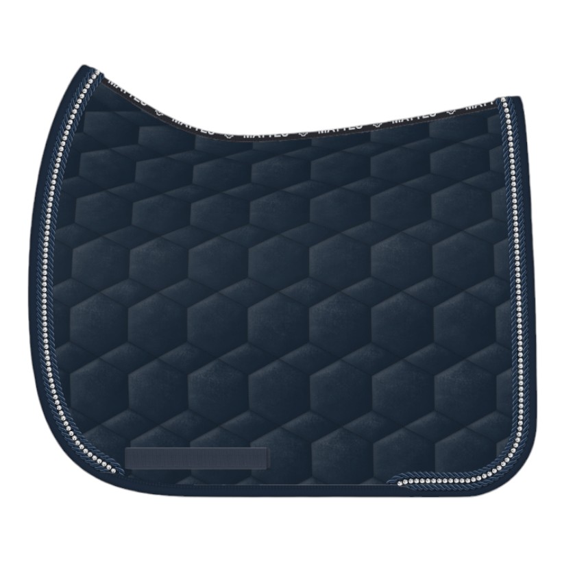 Het Mattes Dekje Velvet Navy Crystal combineert technische perfectie met een chique uitstraling. De diepe navykleur geeft het dekje een tijdloze, elegante look, terwijl de glinsterende kristallen bies voor een subtiele luxe touch zorgt. Ideaal voor zowel training als wedstrijd.