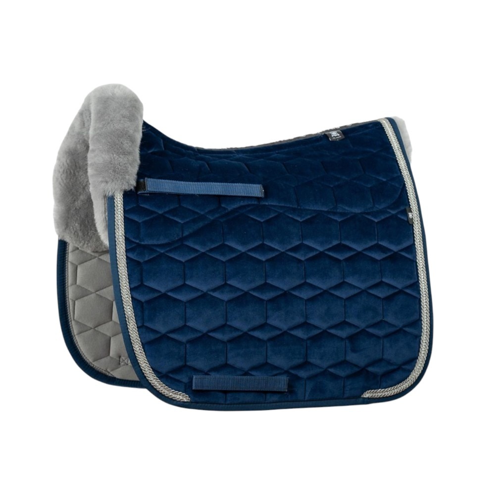 Het Mattes Dekje Velvet Navy Grey Crystal met Bont straalt pure elegantie uit dankzij de diepe navy velvet stof gecombineerd met een verfijnde grey crystal bies. Dit dekje is ideaal voor ruiters die houden van een klassieke uitstraling met een subtiel modern accent.