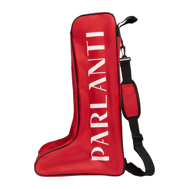De Parlanti Laarzentas is ontworpen om uw rijlaarzen veilig en in optimale conditie te houden tijdens transport en opslag. Gemaakt van technisch zwart en rood materiaal, biedt deze tas zowel duurzaamheid als stijl. Het gestikte Parlanti-logo en de ritssluiting zorgen voor een elegante uitstraling en gemakkelijke toegang.