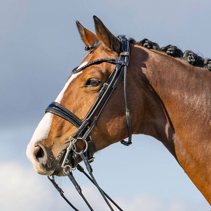 De Passier Stang&Trens Hoofdstel Highscore is een elegant en hoogwaardig dressuurhoofdstel dat luxe design combineert met paardvriendelijke anatomie. Het dubbellijns hoofdstel is gemaakt van fijn Passier-leer en ontworpen met comfort en stijl in het achterhoofd – ideaal voor dressuurruiters die kwaliteit willen zonder concessies.