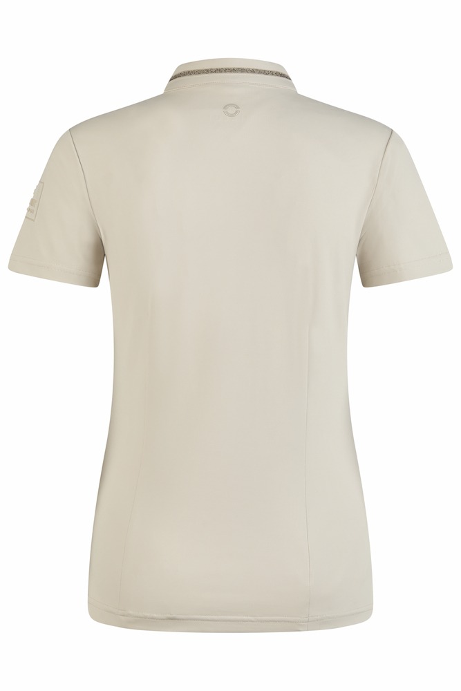 Tonale crystal-siliconen applicatie op de kraag en een Pikeur-label op de borst. Daarnaast een siliconen label op de mouw en een tonale, ronde Pikeur-icon op de rug.