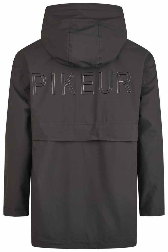 Grote glanzende Pikeur Athleisure-print op het rugpand en een klein siliconenprintje op de borst. Kleine zijslits met drie drukkers. De capuchon is verstelbaar met koord en stopper.