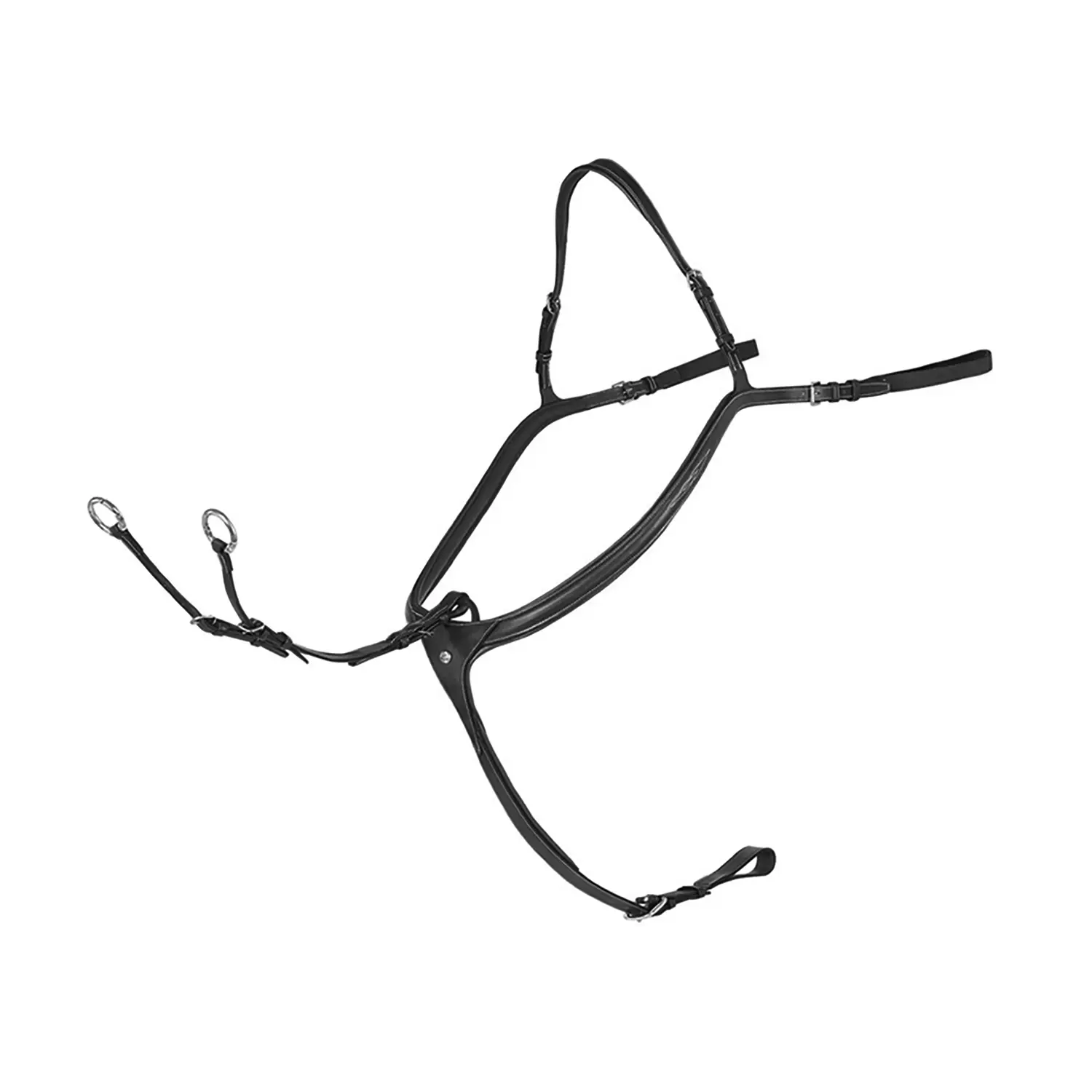 Het Prestige Borsttuig Long Bridge 3D035 met afneembare martingaal is ontworpen voor optimale bewegingsvrijheid en comfort van het paard, zonder in te boeten op stabiliteit. Dit hoogwaardige borsttuig, gemaakt van eersteklas leer, heeft een anatomisch gevormd ontwerp dat zich perfect aanpast aan de natuurlijke vormen van het paard.