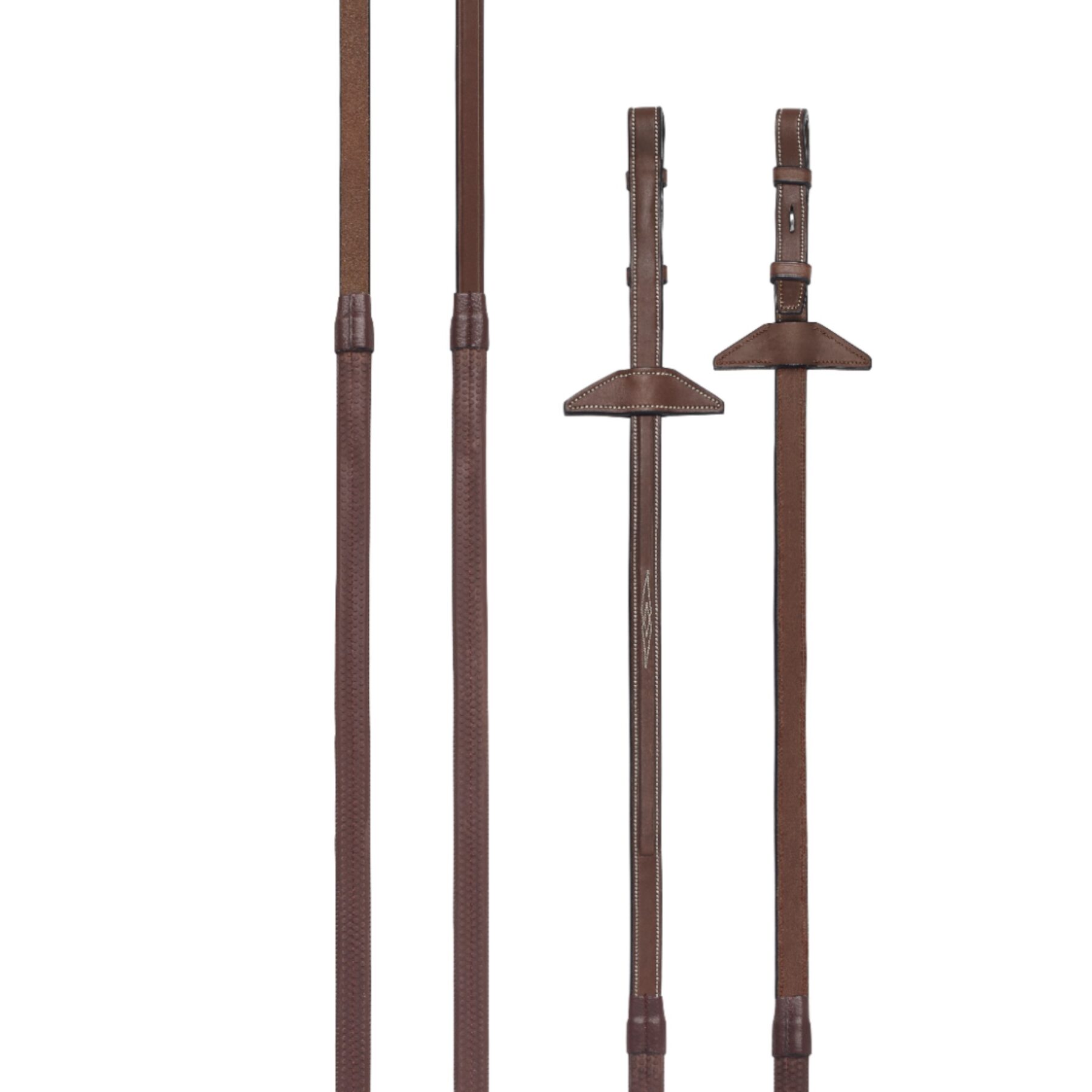 De Prestige Rubber Teugels Grip 3E144 zijn volledig met rubber bekleed wat zorgt voor een goede grip en antislip werking. Afgewerkt met zilverkleurige gespen en crèmekleurige sierstiksels op het leder. De teugels zijn 16mm breed en de lengte is 280CM (one size).