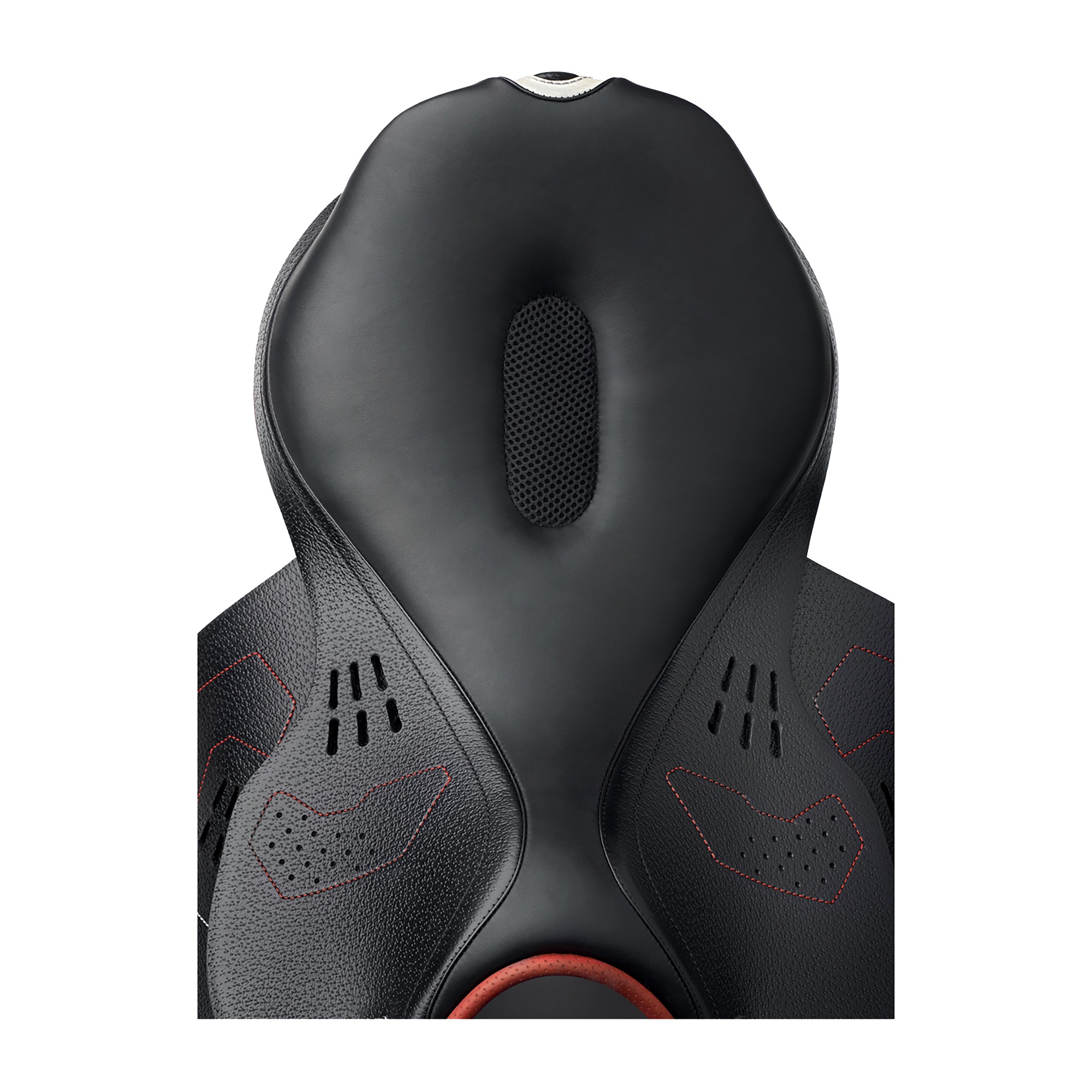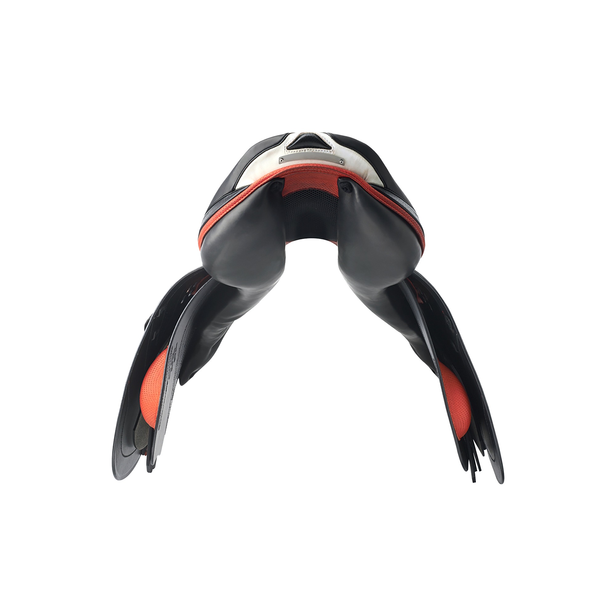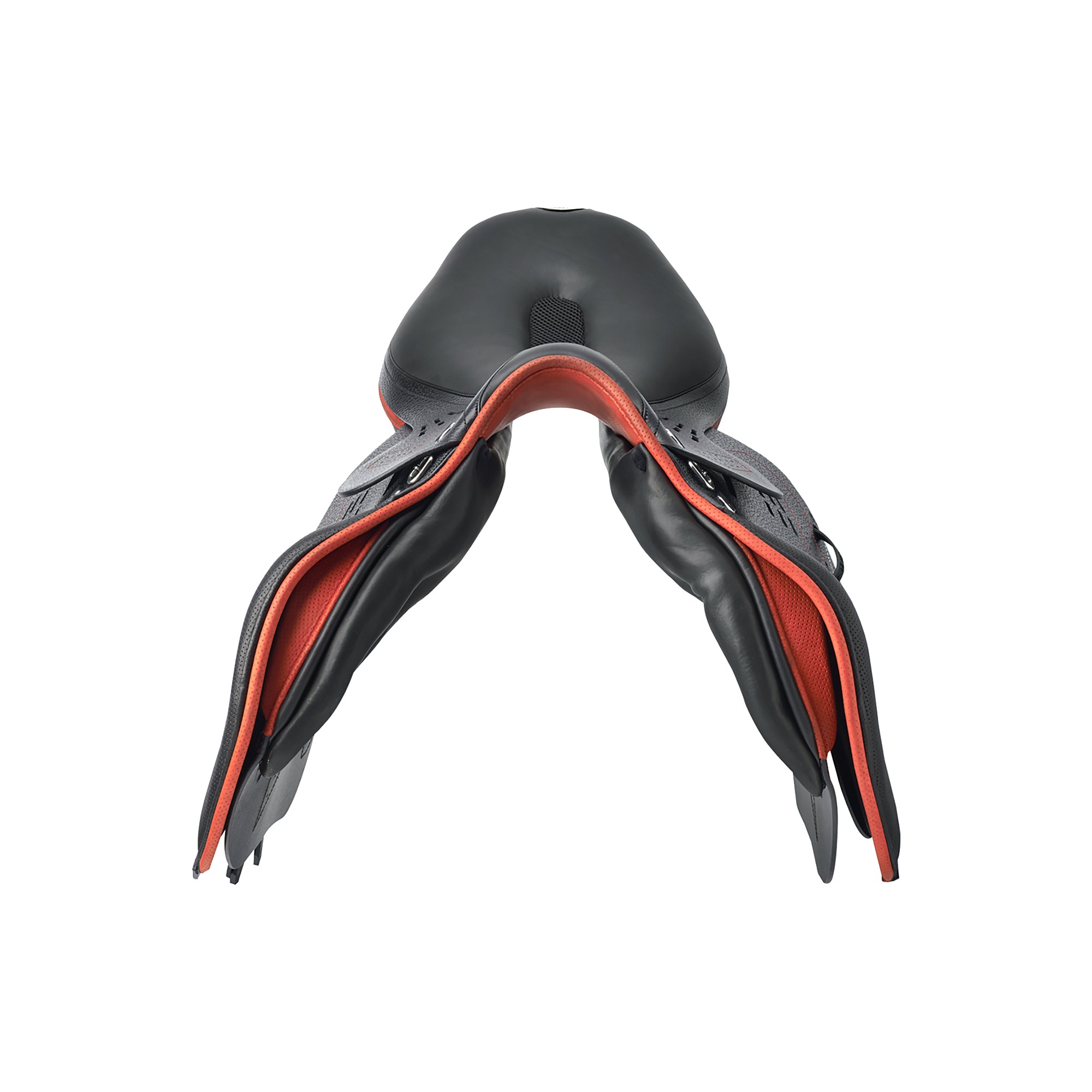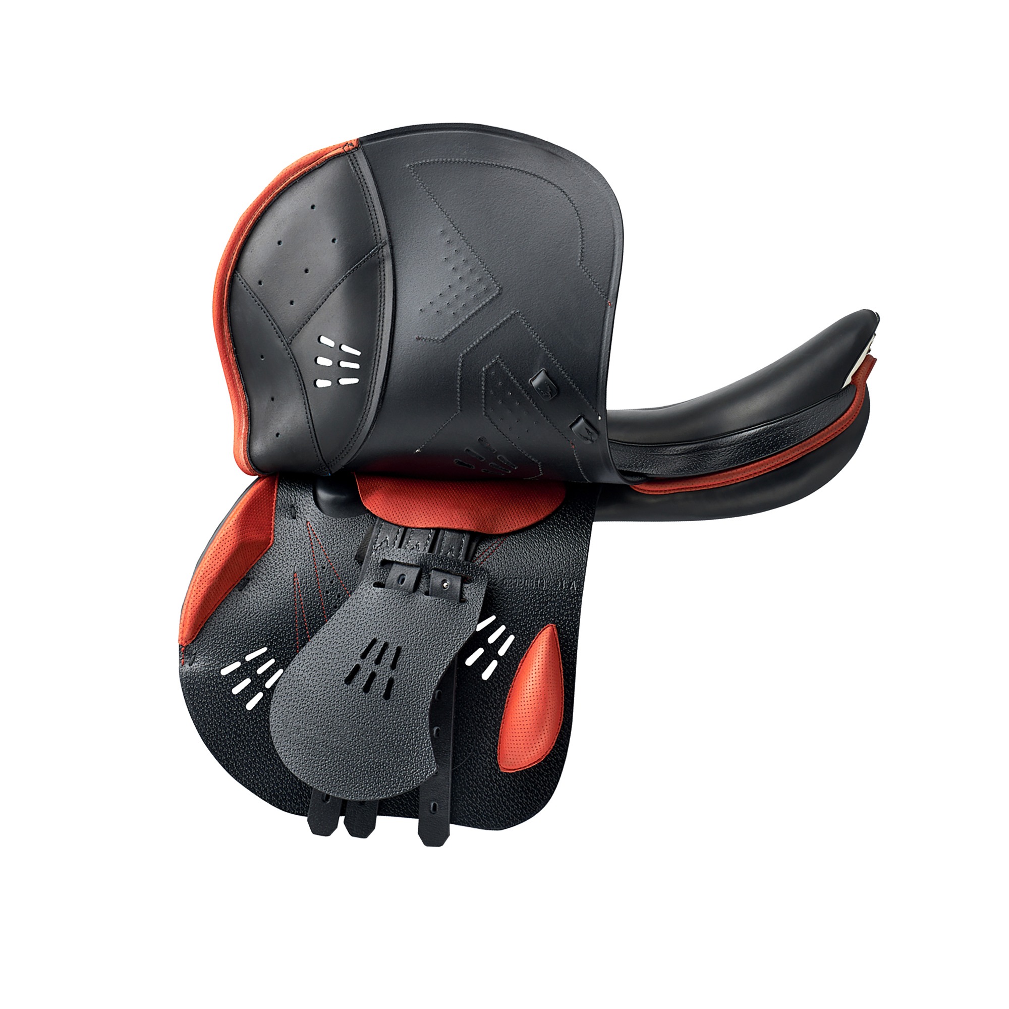 De ergonomisch gevormde zitting biedt de ruiter een natuurlijke, gebalanceerde houding. Dit bevordert stabiliteit tijdens het springen en helpt de ruiter om nauwkeurige hulpen te geven. - Volledig Personaliseerbaar