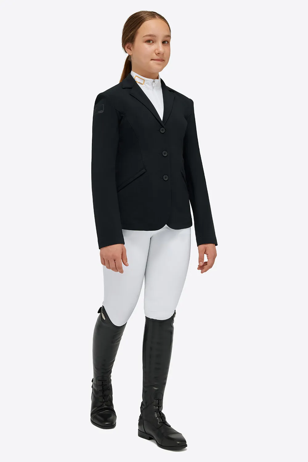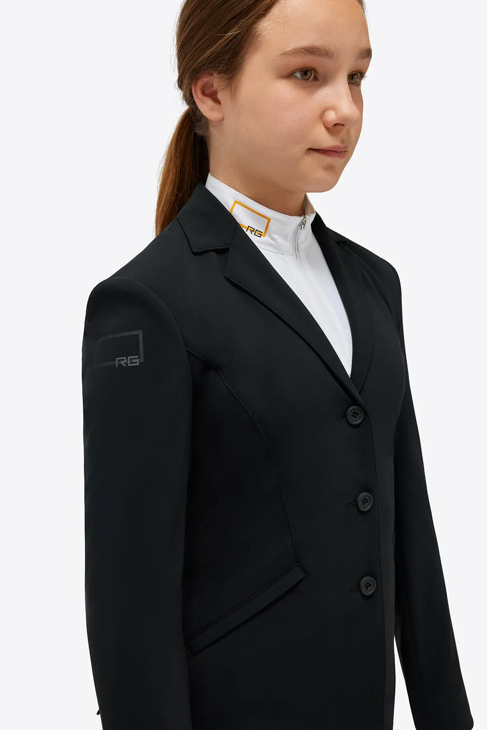 Een tijdloos en functioneel wedstrijdjasje dat perfect past bij ambitieuze jonge ruiters.