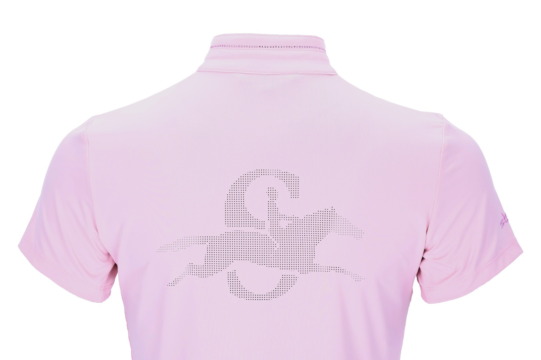 Op de rug zorgt het geperforeerde logo voor een sportief-elegant accent, terwijl de opstaande kraag met strass-versiering extra glamour toevoegt. Sprankelende strass-paardlogo’s op borst en mouw maken het design compleet en geven een verfijnde, opvallende look.