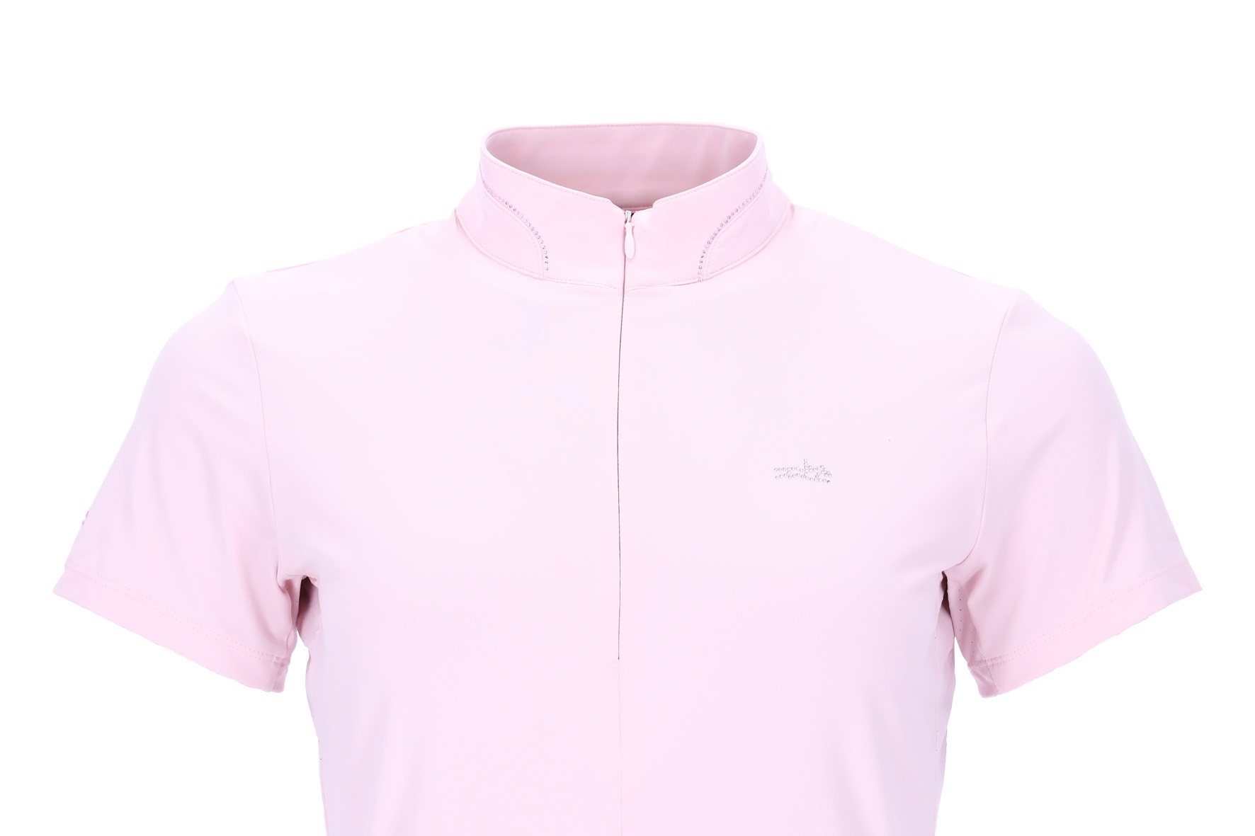 • Strass-paardlogo’s op borst en mouw voor een sprankelend effect