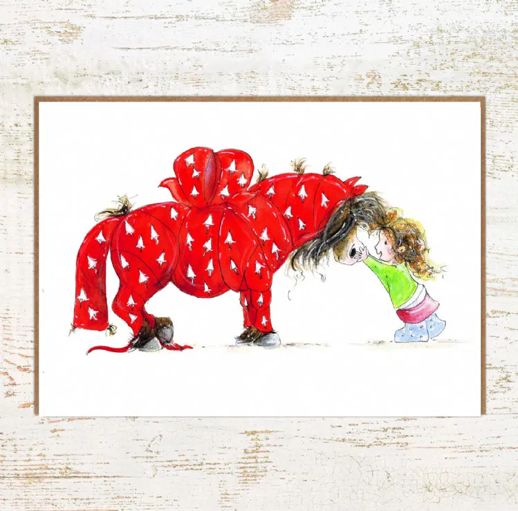Wrapped Up is een prachtige kerstkaart met een schitterende pony die is ingepakt in felrood kerstcadeaupapier. Dit kleurrijke kunstwerk is de perfecte kerstkaart voor zowel volwassenen als kinderen.